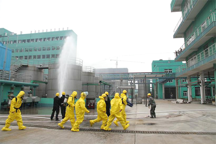 11月10日,在閏土生態(tài)工業(yè)園舉行了閏土生態(tài)工業(yè)園志愿消防隊事故應(yīng)急處置演練暨園區(qū)志愿消防隊第五分隊成立儀式。隨著閏土生態(tài)工業(yè)園規(guī)模的不斷擴(kuò)大,園區(qū)面臨的消防安全壓力也越來越大,為強(qiáng)化消防力量、鍛煉消防隊伍,經(jīng)股份公司批準(zhǔn),園區(qū)管委會保衛(wèi)部組織進(jìn)行了一次園區(qū)志愿消防隊事故應(yīng)急處置演練,同時舉行了園區(qū)志愿消防隊第五分隊(閏土染料公司)成立儀式。演練模擬包括員工在生產(chǎn)區(qū)域違章吸煙、亂扔煙頭而造成的車間內(nèi)易燃易爆物品引發(fā)的安全事故。