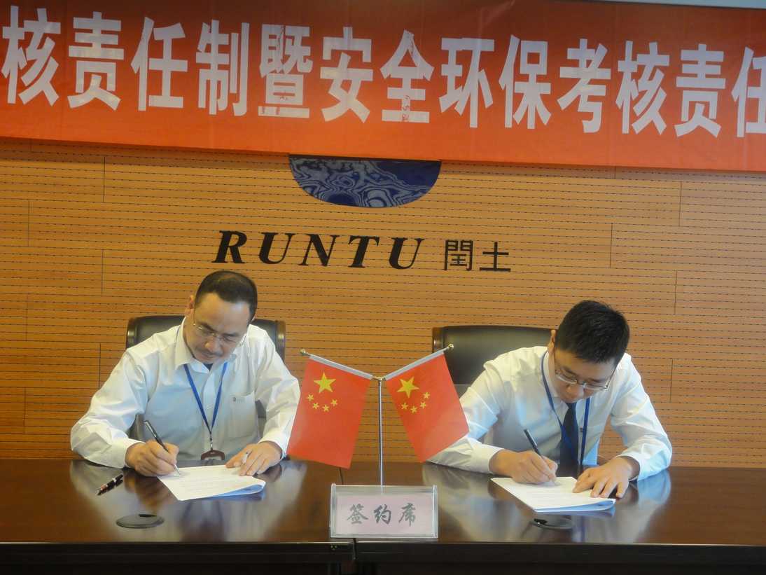 ——閏土股份舉行2015年度經(jīng)濟(jì)考核責(zé)任制暨安全環(huán)??己素?zé)任書簽訂儀式