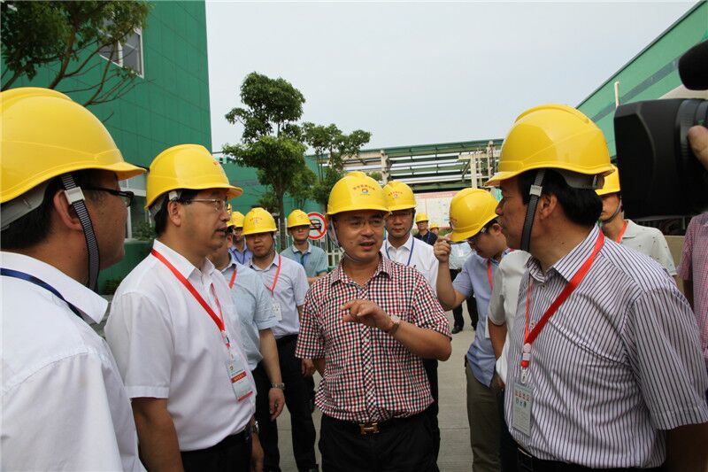 8月17日,由紹興市委書記陳金彪(左三)帶隊的督查組到閏土生態(tài)工業(yè)園內(nèi)的閏土新材料公司督查安全生產(chǎn)工作。陳金彪書記一行深入生產(chǎn)一線,了解企業(yè)?;返膬Υ?、使用情況,詳細詢問了?;返奈锢砘瘜W(xué)特征、緊急處置辦法和應(yīng)急預(yù)案,并聽取了企業(yè)負責人關(guān)于生產(chǎn)工藝流程的介紹。陳書記對閏土新材料公司的安全生產(chǎn)和?;饭芾砉ぷ鞅硎菊J可,并囑咐企業(yè)一定要時刻緊繃安全生產(chǎn)這根弦,企業(yè)在抓效益的同時,更要抓好安全、環(huán)保工作。紹興市副市長楊文孝、紹興市上虞區(qū)區(qū)委書記孫云耀、紹興市上虞區(qū)區(qū)委常委、杭州灣上虞經(jīng)濟技術(shù)開發(fā)區(qū)管委會主任胡文煒、紹興市上虞區(qū)副區(qū)長王永表等領(lǐng)導(dǎo),閏土股份副董事長阮加春、閏土股份副總經(jīng)理阮光棟、閏土新材料公司總經(jīng)理周杰文等一起陪同。
