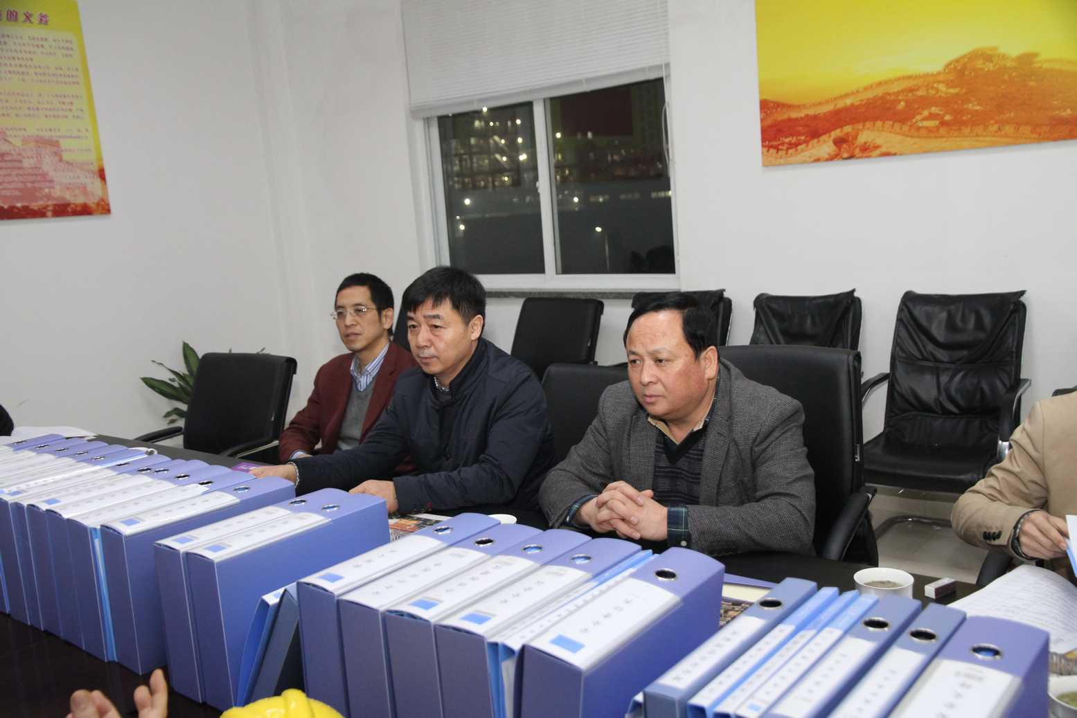 檢查組領(lǐng)導(dǎo)在認真聽取企業(yè)關(guān)于安全生產(chǎn)工作的匯報。圖中,中間為國家安監(jiān)總局職業(yè)健康司副司長王建冬、左一為省安監(jiān)局總工程師李公杭、右一為紹興市政府副秘書長章國金。