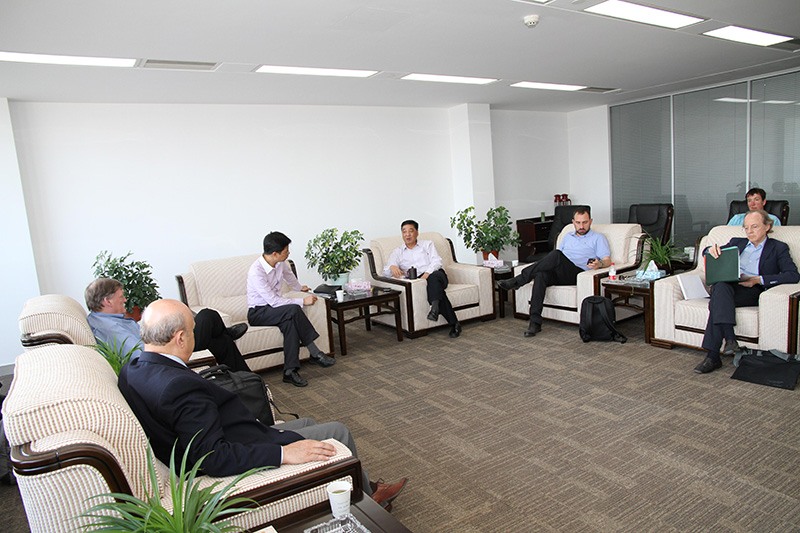 2、閏土股份展廳內(nèi),公司銷售員和全球客商進(jìn)行商務(wù)洽談。